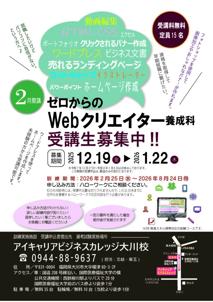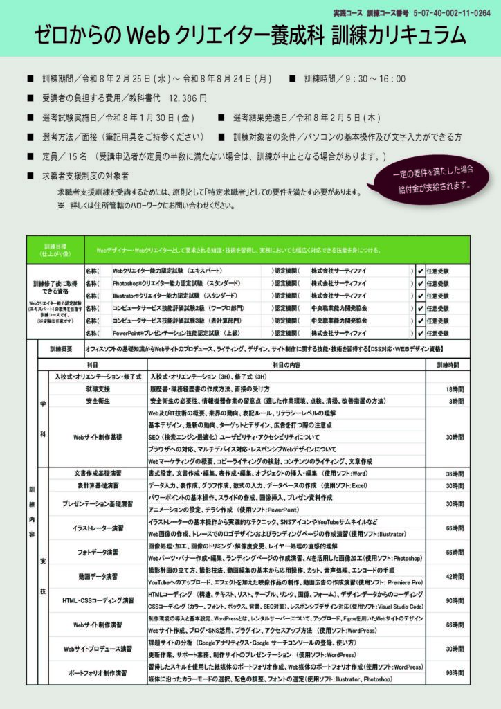 【職業訓練】2月開講予定講座のご案内